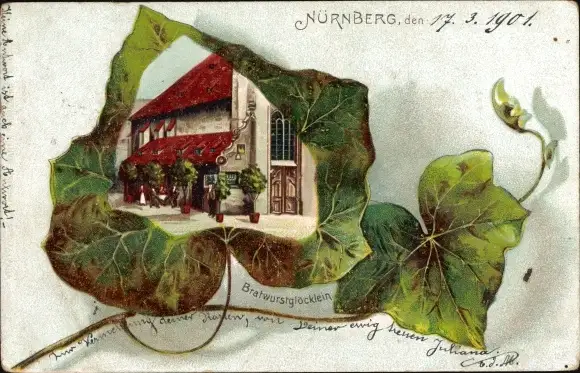 Efeublatt Litho Nürnberg in Mittelfranken Bayern, Bratwurstglöcklein, Gasthaus
