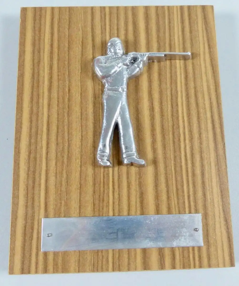 Ehrengeschenk GST DDR Wettkampfpreis unbeschriftetGröße 18 cm x 14 cm x 1,75Aluminumguß auf Holzbrett in gutem Zustand