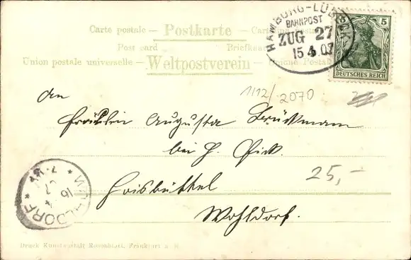 Zustand, siehe Scan, gelaufen, 1907 - ca 14 cm X 9 cm