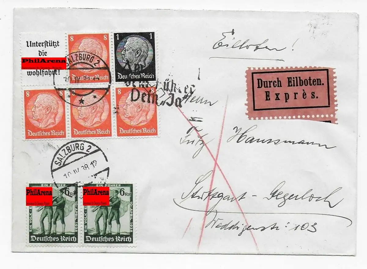 Eilboten Brief, Salzburg nach Stuttgart, 1938 mit MH