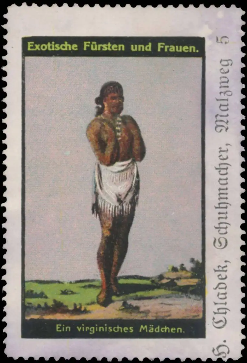 Serie: Exotische Fürsten und Frauen, Virginia, Größe/Zustand: 6x4 , fleckig, Original alte Reklamemarke die seinerzeit für die Werbung benutzt wurde