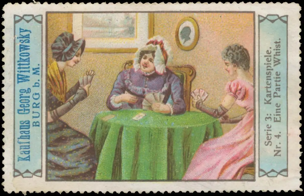 Serie 3, Kartenspiele, Nr. 4, Größe/Zustand: 5x7 , leicht fleckig, Original alte Reklamemarke die seinerzeit für die Werbung benutzt wurde