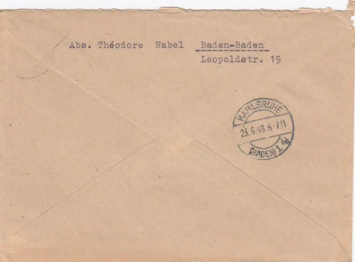 Einschreiben 1948 Baden-Baden nach Karlsruhe