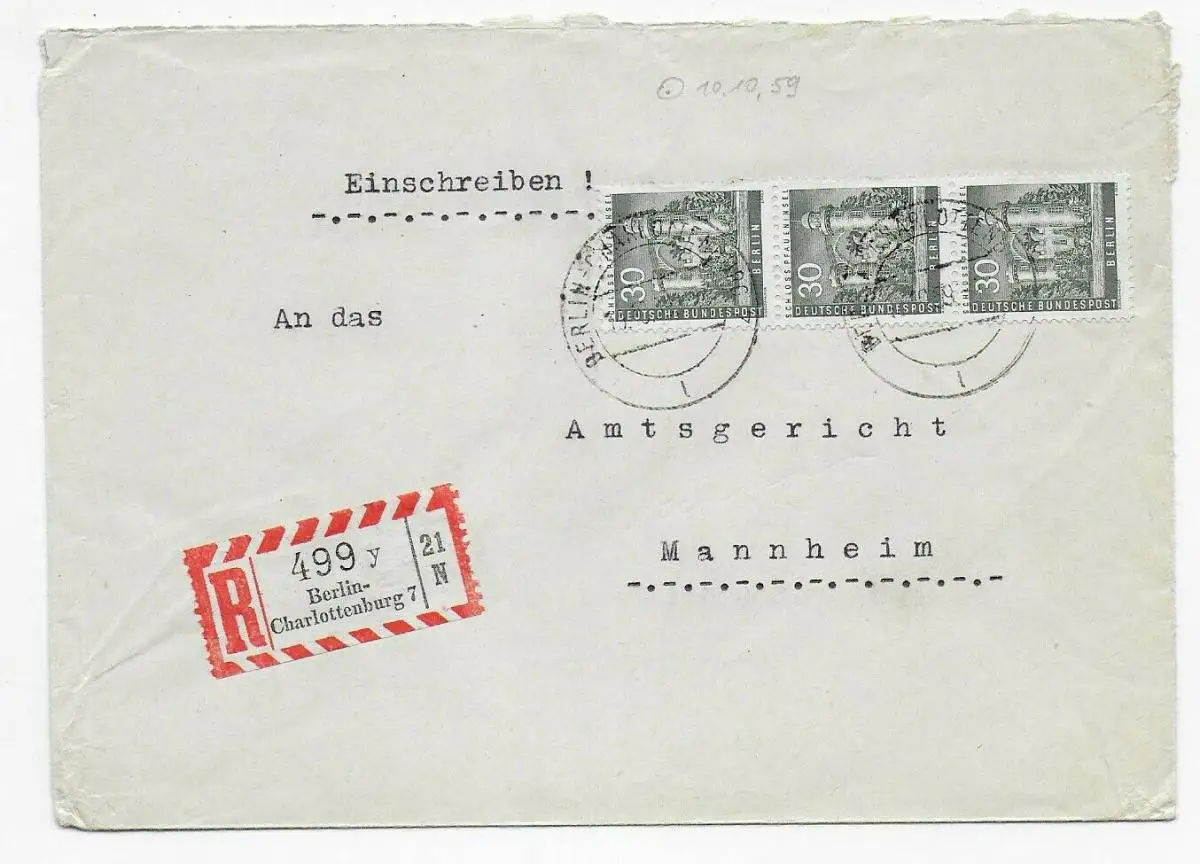 Einschreiben Berlin Charlottenburg, 1959 nach Mannheim, MiNr. 148, MeF