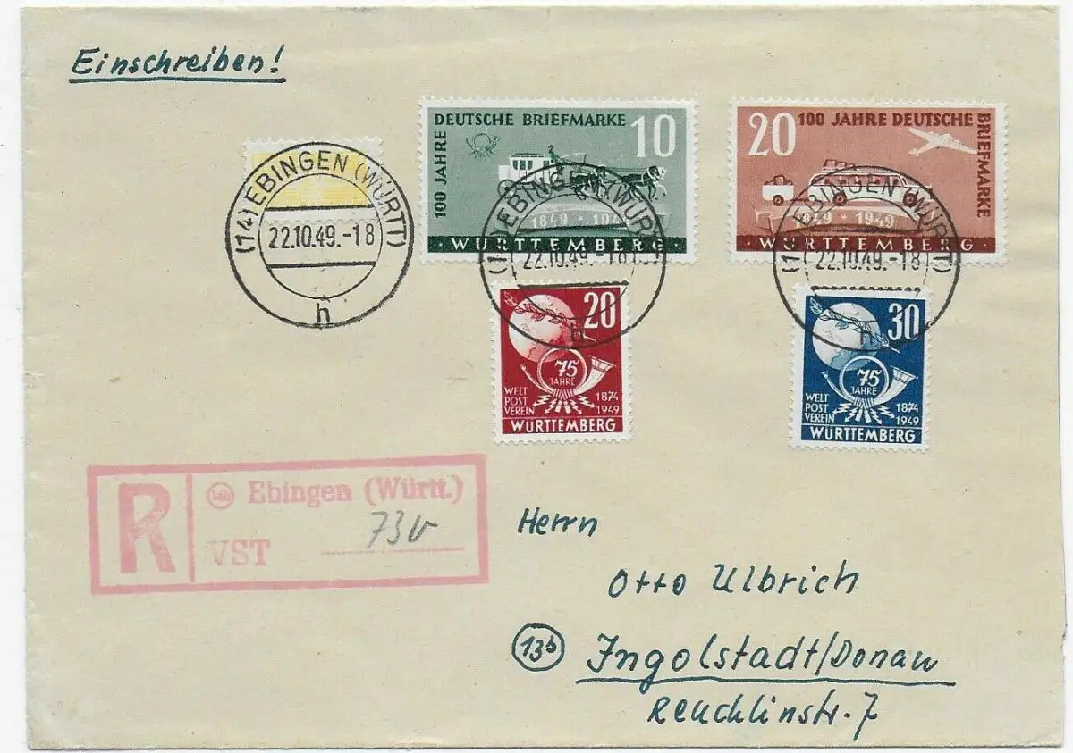 Einschreiben Ebingen nach Ingoldstadt, 1949