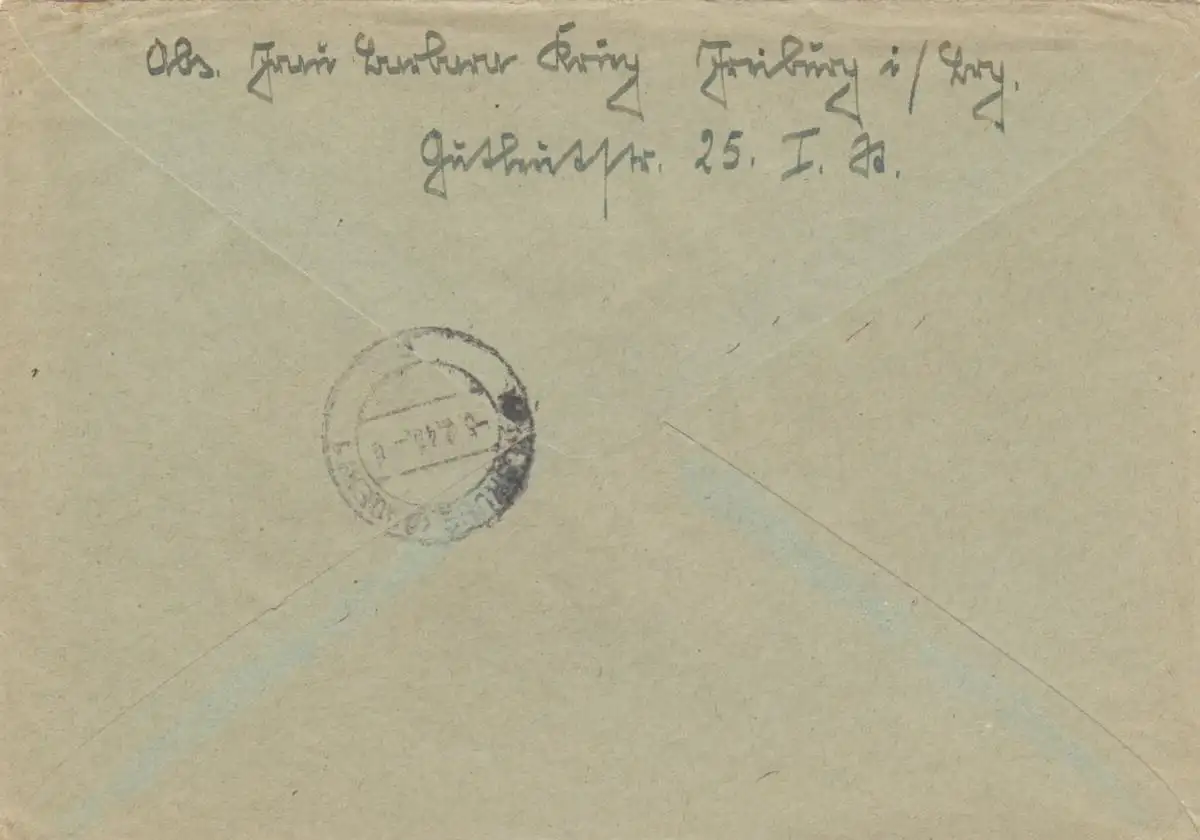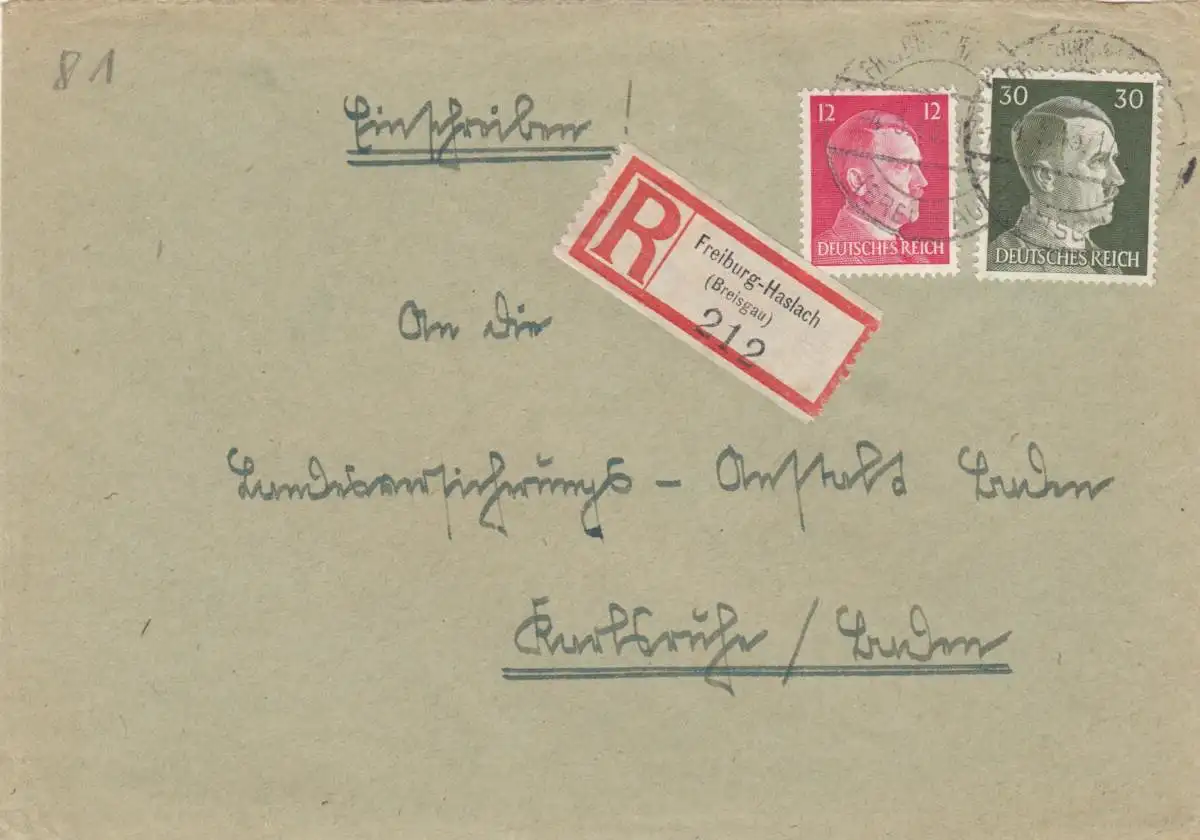 Einschreiben Freiburg Haslach nach Karlsruhe 1943