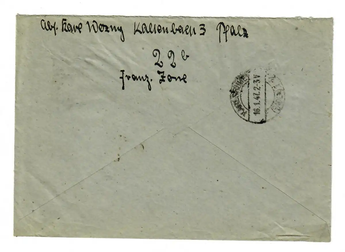 Einschreiben Hinterweidenthal 1947 nach Karlsruhe