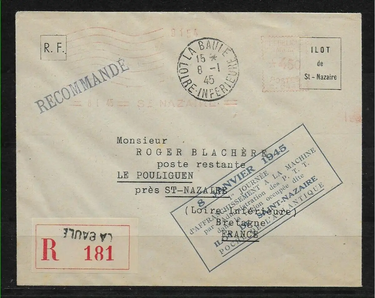 Einschreiben La Loire Inferieure, Baule, 8.1.1945 nach St. Nazaire