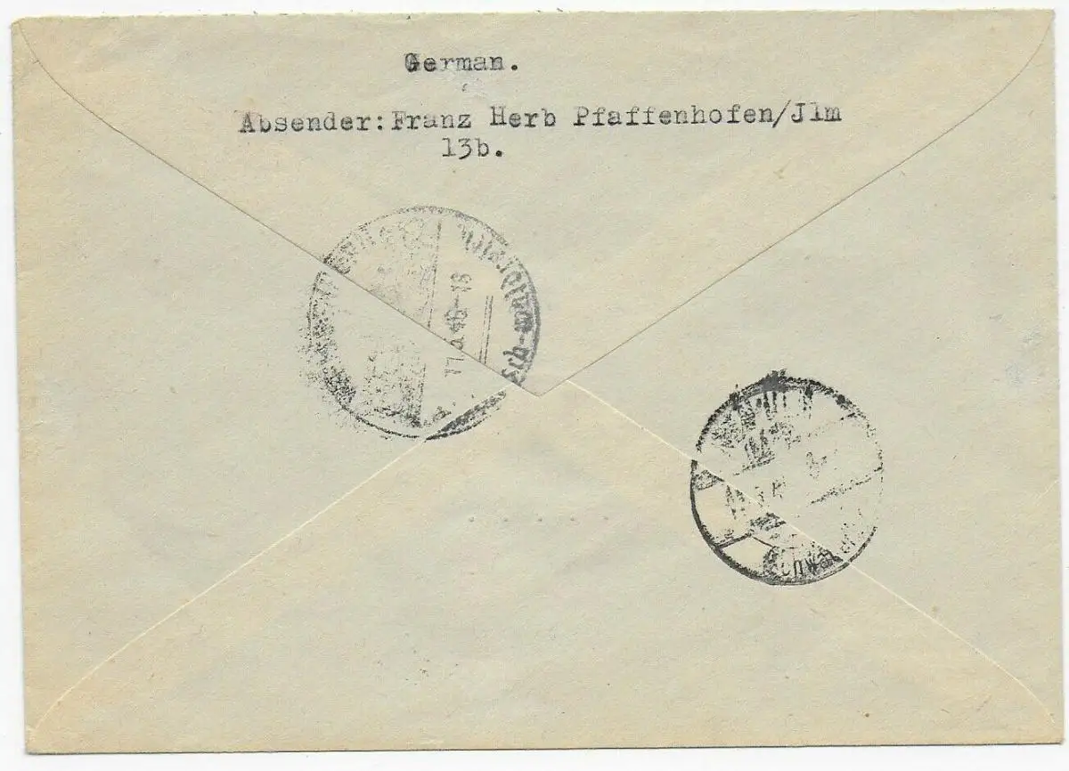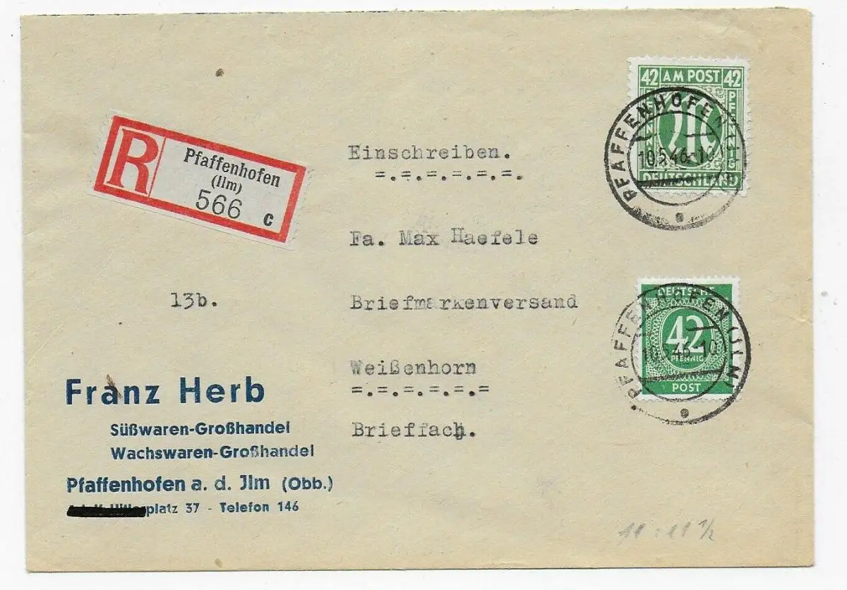 Einschreiben Pfaffenhofen nach Weißenhorn, 1946