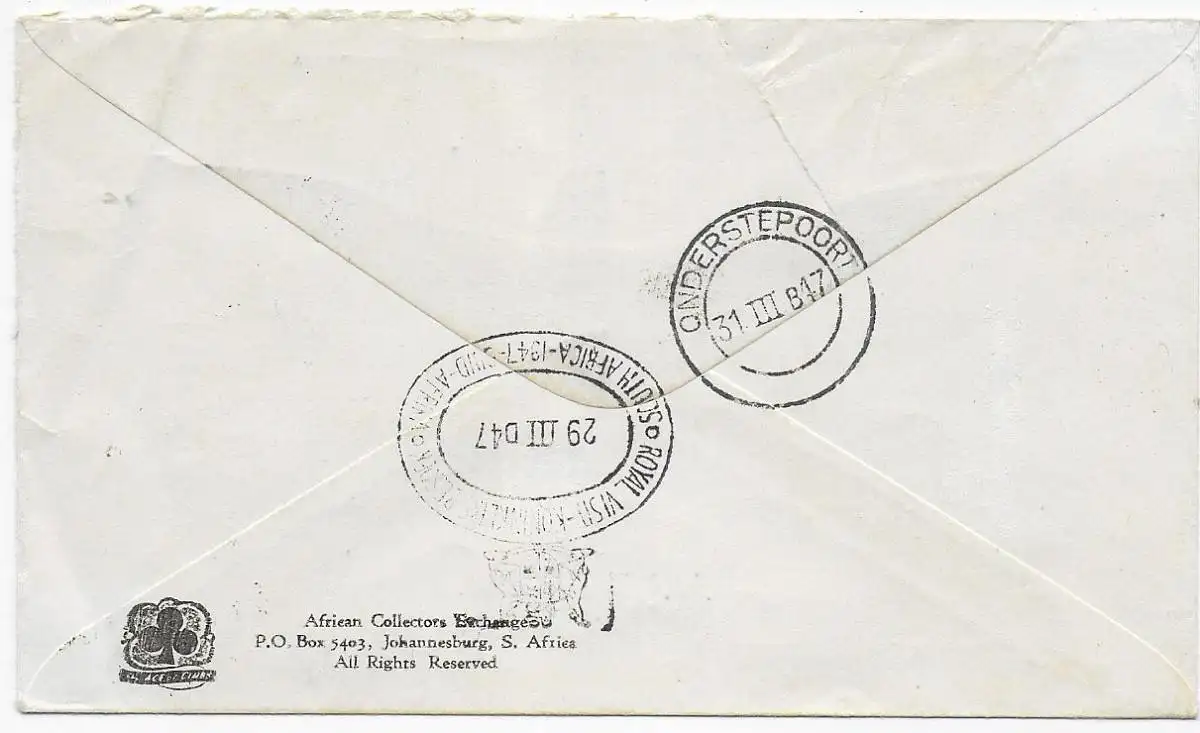 Einschreiben Pretoria, Day of Arrival of Royal Family: 1947