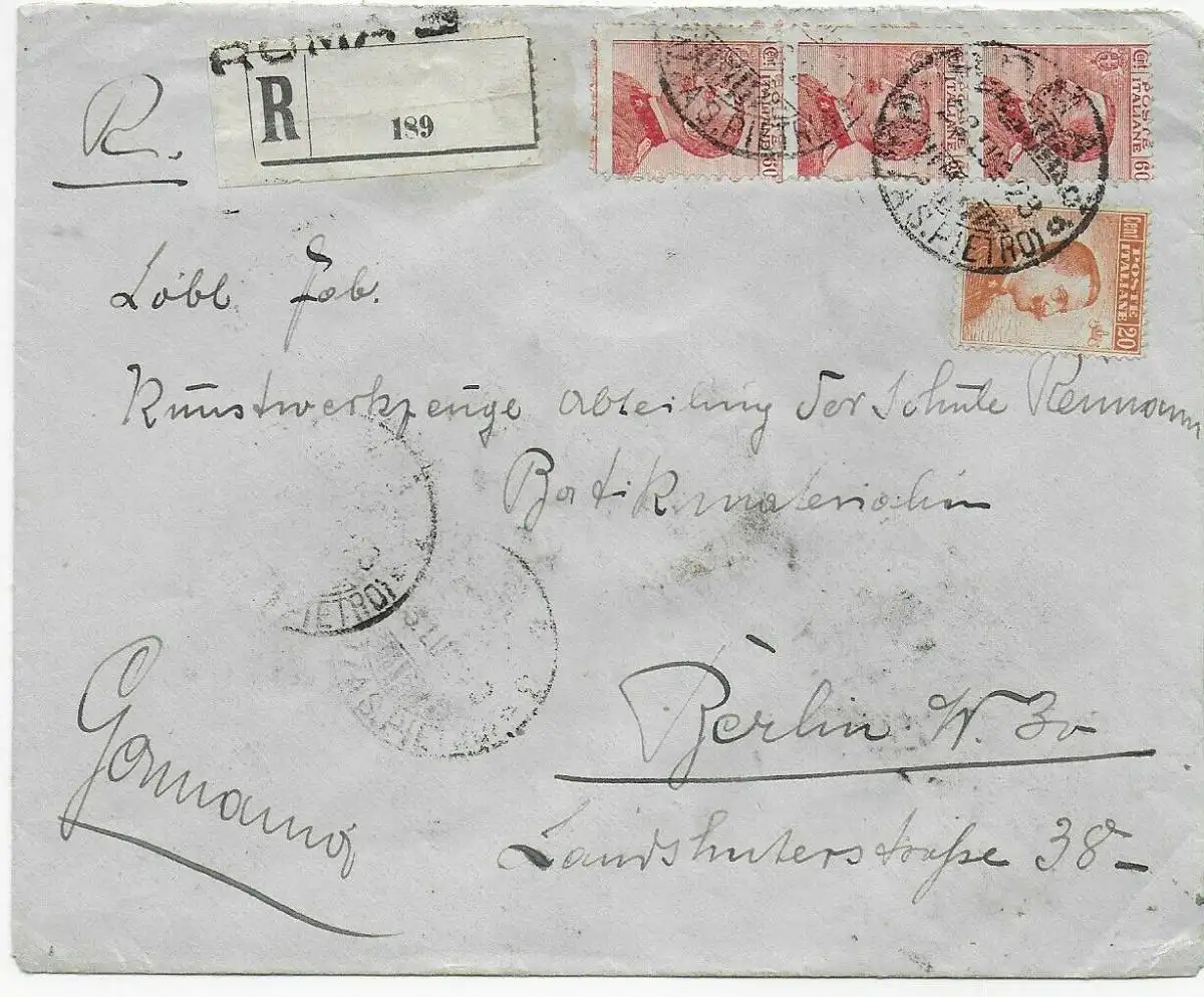 Einschreiben Rom nach Berlin, 1923