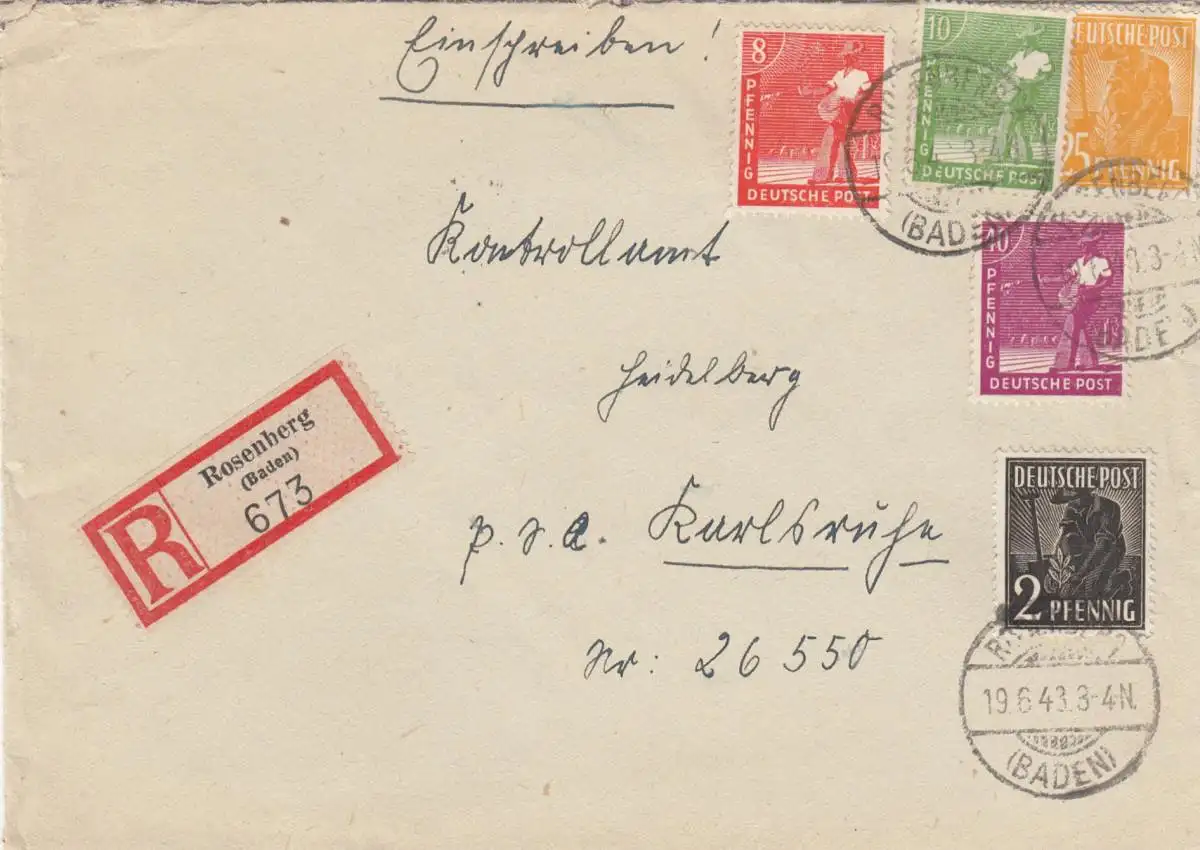 Einschreiben Rosenberg 1948 nach Karlsruhe