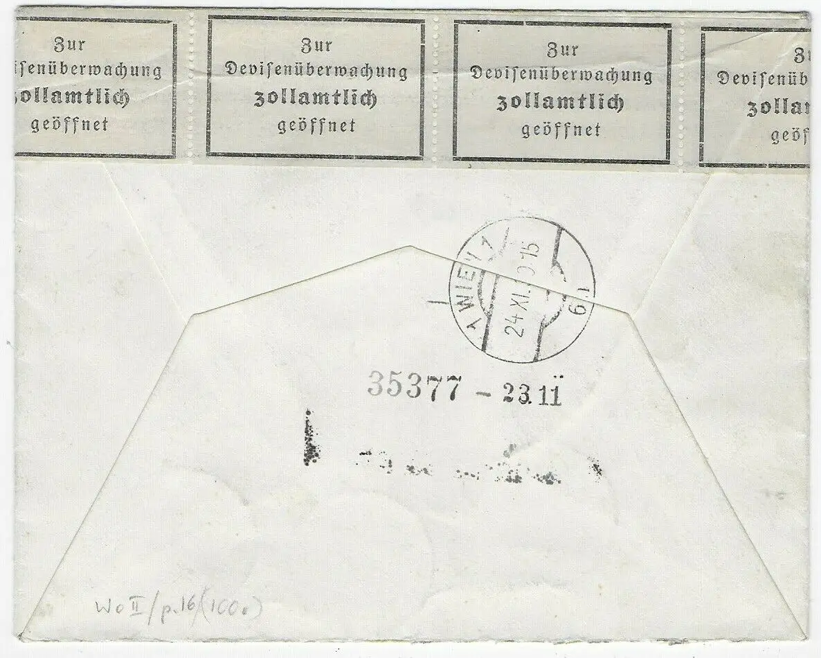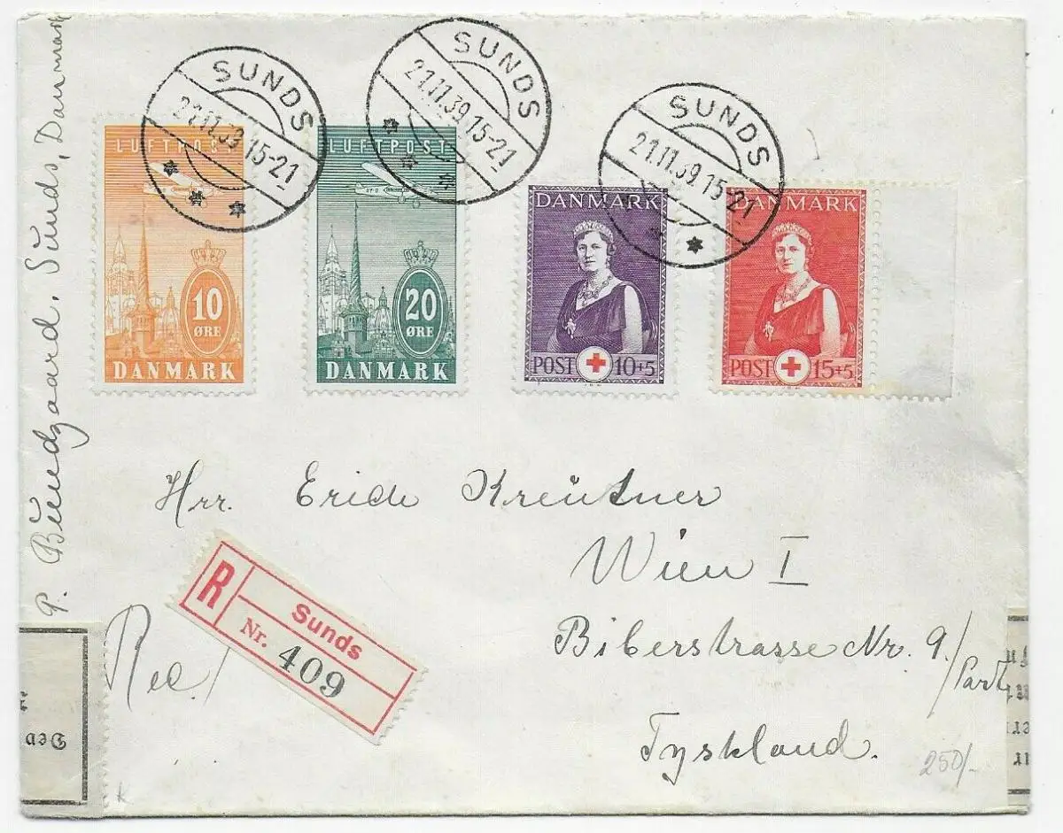 Einschreiben Sunds nach Wien, 1939: Zollamtlich geöffnet