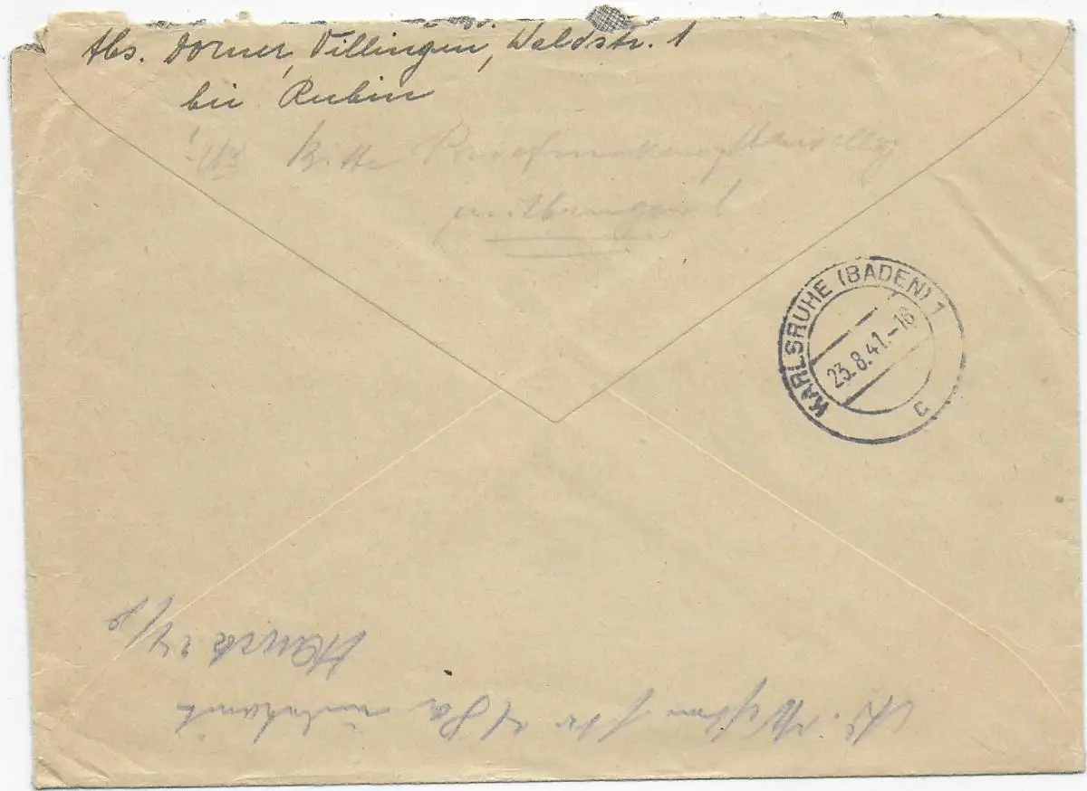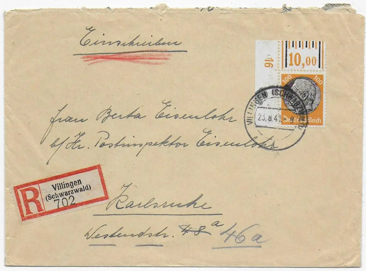 Einschreiben Villingen-Schweningen, 1941; MiNr. 528 WOR, Druckerzeichen 16