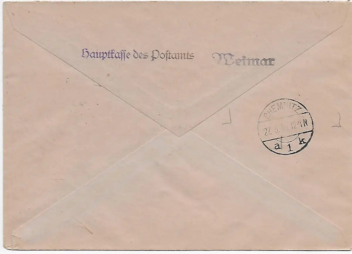 Einschreiben Weimar nach Chemnitz, Prell, 1946