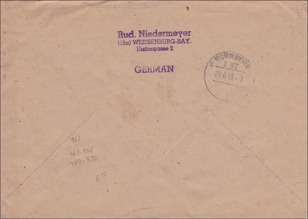 Einschreiben Weissenburg nach Nürnberg 1948