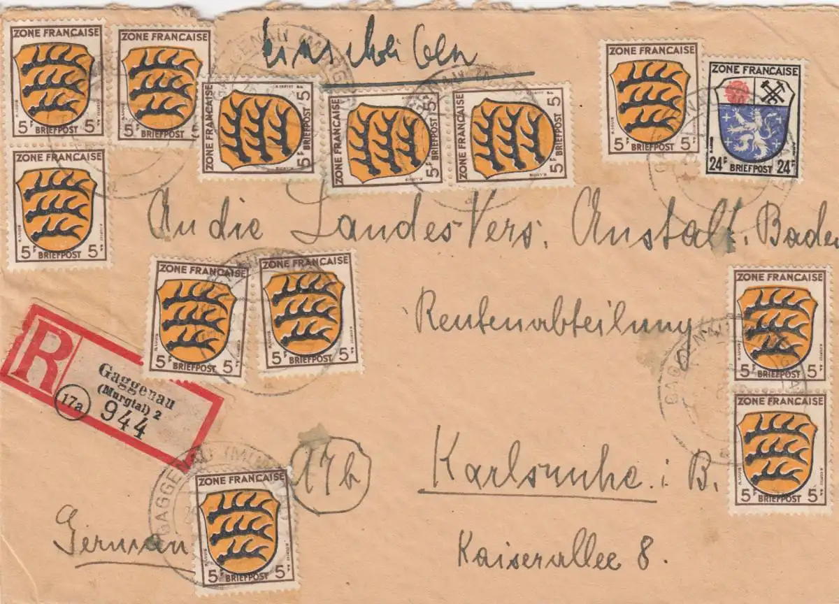 Einschreiben aus Gaggenau nach Karlsruhe