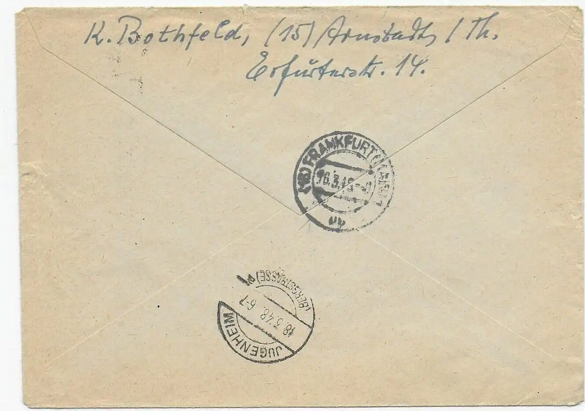 Einschreiben von Arnstadt nach Frankfurt 1948