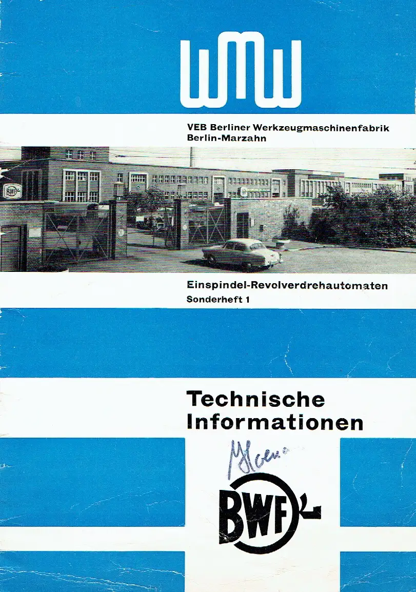 Herausgeber: VEB Berliner Werkzeugmaschinenfabrik, Berlin-Marzahn