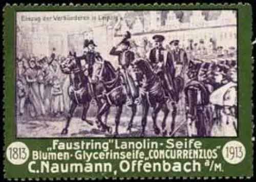 Faustring Lanolin-Seife, Blumen-Glycerinseife Concurrenzlos, Größe/Zustand: 5x6 , guter Zustand, Original alte Reklamemarke die seinerzeit für die Werbung benutzt wurde