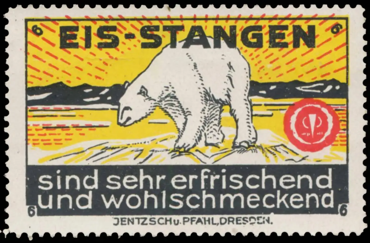sind sehr erfrischend und wohlschmeckend, Eisbär, Größe/Zustand: 4x6 , guter Zustand, Original alte Reklamemarke die seinerzeit für die Werbung benutzt wurde