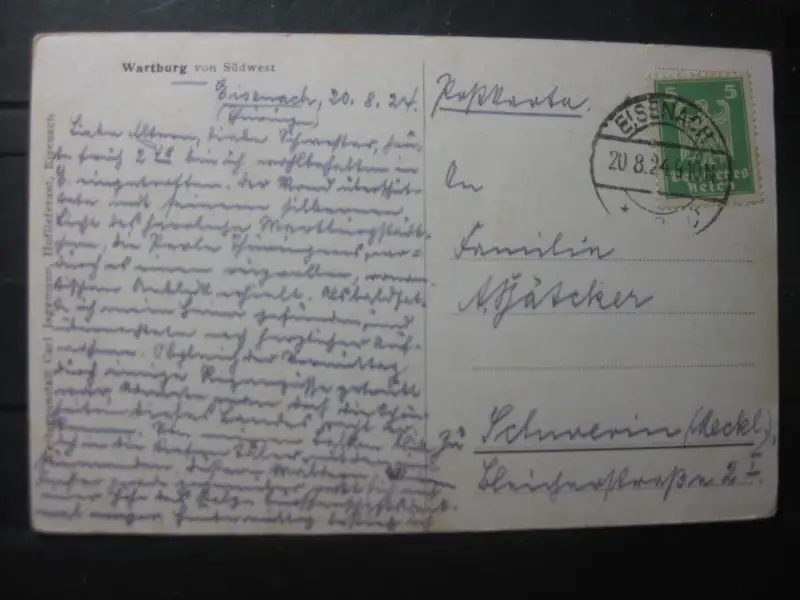 ca. 1924; Unschärfen, Spiegelungen, Verbiegungen, Verwerfungen sind allein durch das abfotografieren bedingt; Karte ist beidseitig abgebildet, Erhalt siehe Scan; ist das Foto qualitativ nicht aussagekräftig genug, kann es besseres Foto angefordert werden. Rückgabe bei Karten ist generell ausgeschlossen.