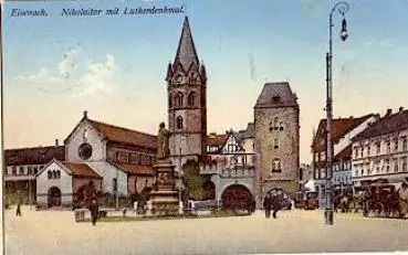 Eisenach, Nikolaitor mit Lutherdenkmal, gebr. ca. 1910