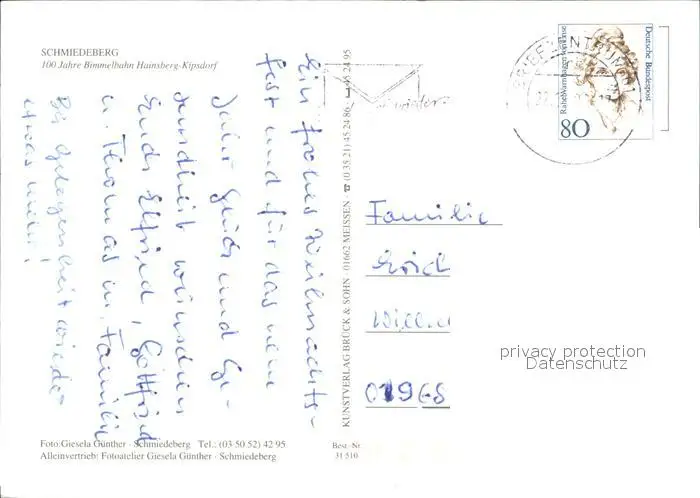 Eisenbahn Bimmelbahn Hainsberg-Kipsdorf Schmiedeberg Eisenbahn postalisch gelaufen nach 1965 Erhaltung siehe scans Alte Ansichtskarte Postkarte PaolPID1
