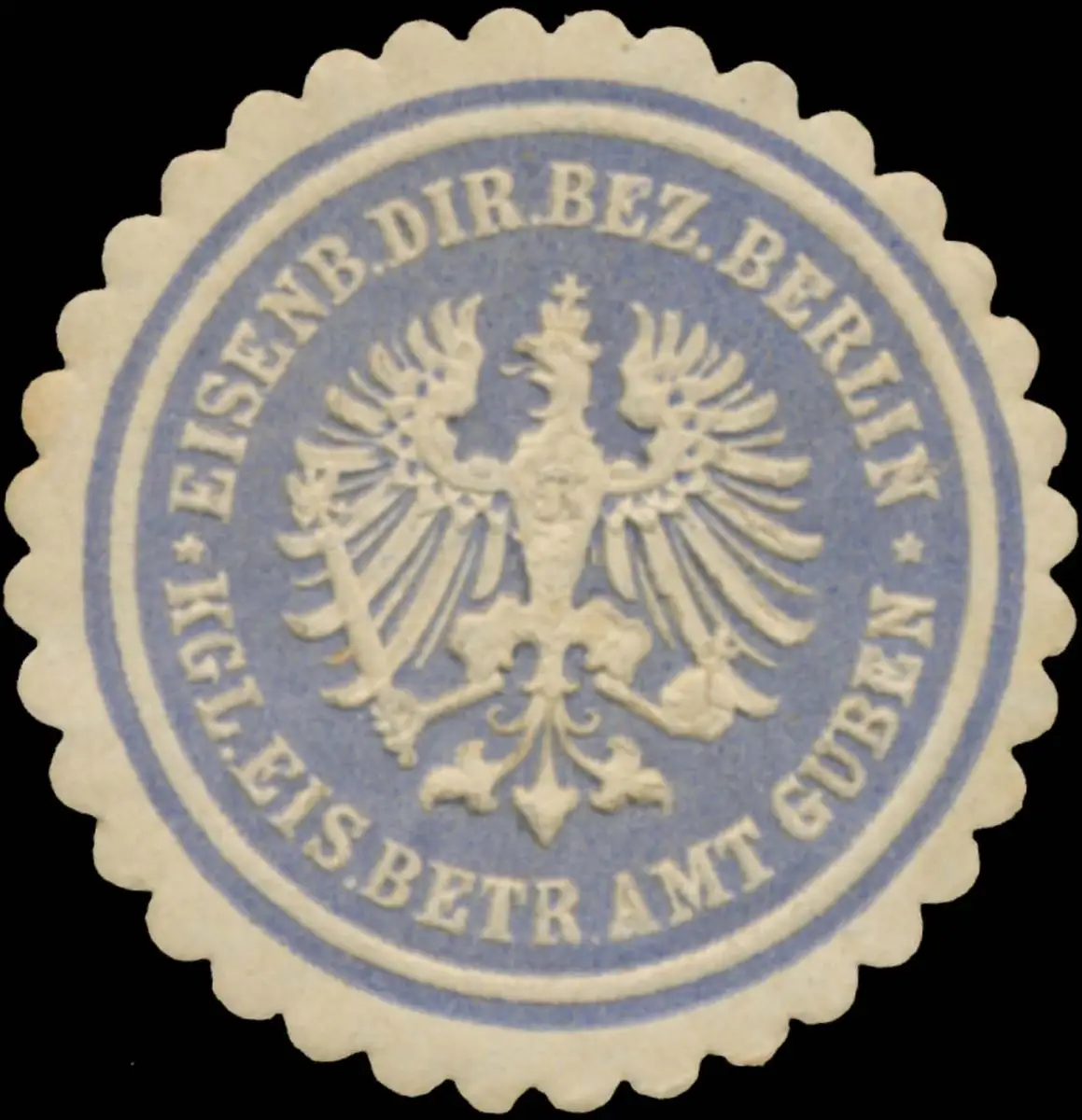 Eisenbahnamt Guben, blau, weiß, geprägt, Größe/Zustand: 3 , guter Zustand, Original Verschluss-Siegelmarke aus Papier welche früher von Behörden, Firmen etc. zum Versiegeln der Briefe benutzt wurden