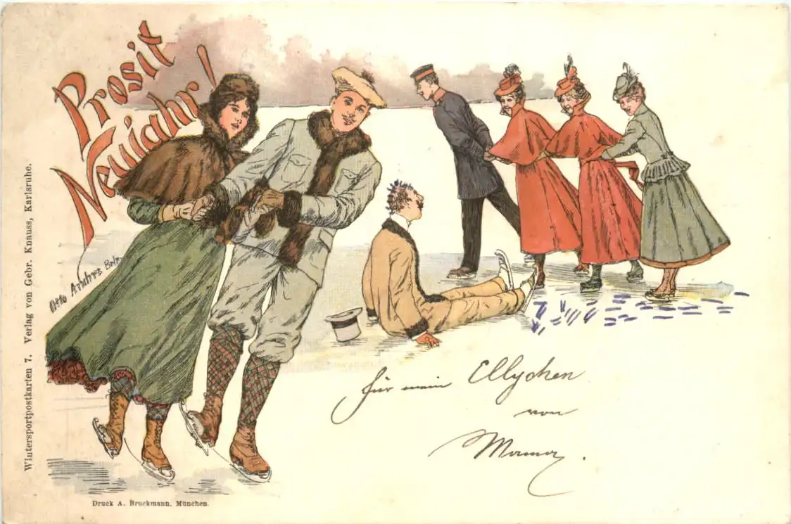 Eislaufen - Neujahr - Litho -784146