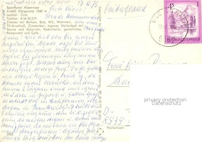 Elbigenalp Sporthotel Alpenrose Lechtal Elbigenalp postalisch gelaufen 1979 Erhaltung siehe scans [FriedD77] Frierer