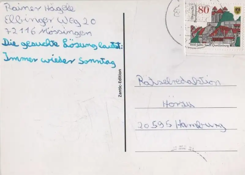 Ich hatte die Rechnung sofort als Vorkasse bezahlt, aber keine Zusendung der Karte erhalten. Trotz Nachfrage keine Rückmeldung bzw. Erklärung. Da es sich zum Glück nur um 1,70 € handelt, ist die Sache für mich erledigt, ärgerlich, aber zu verkraften. Mit den drei anderen Karten, die ich bestellt hatte, hat alles wunderbar geklappt.