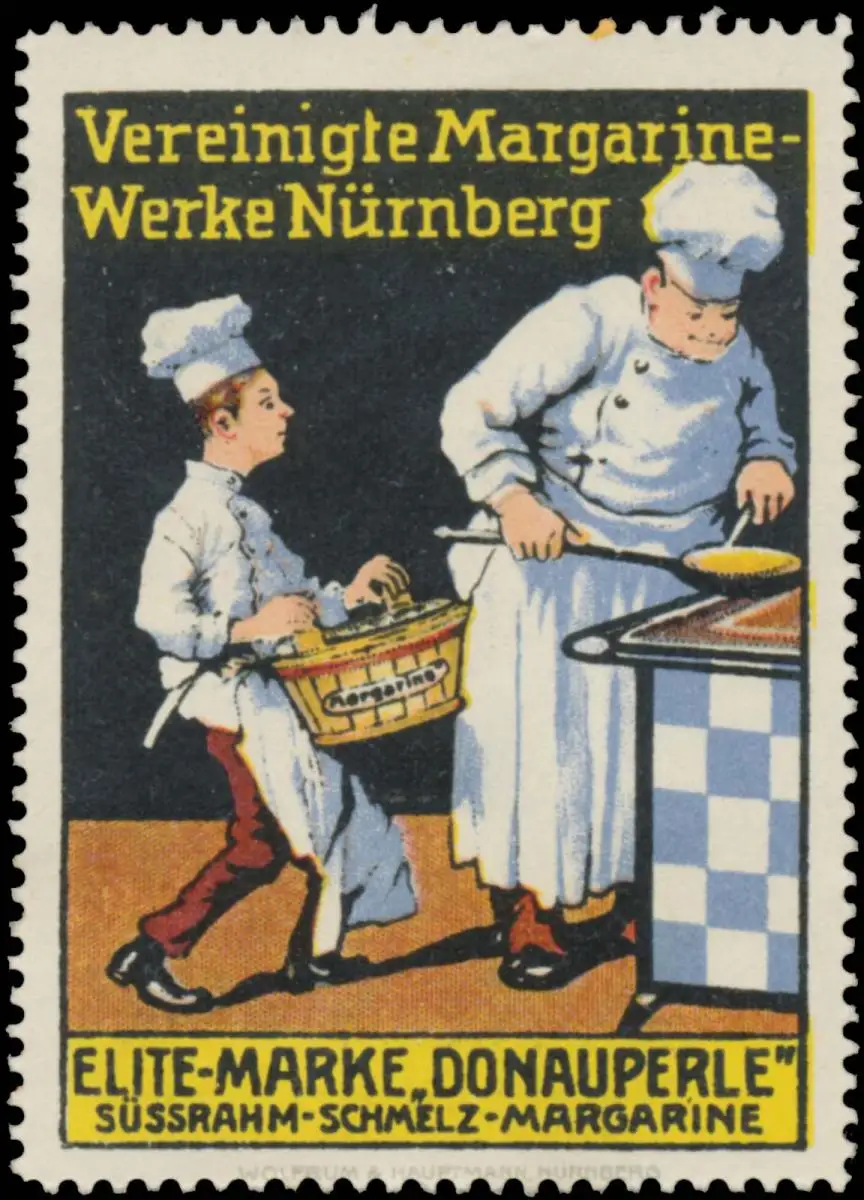 Süssrahm-Schmelz-Margarine, Koch, Küche, Druck: Wolfrum & Hauptmann, Nürnberg, Größe/Zustand: 6x4 , guter Zustand, Original alte Reklamemarke die seinerzeit für die Werbung benutzt wurde