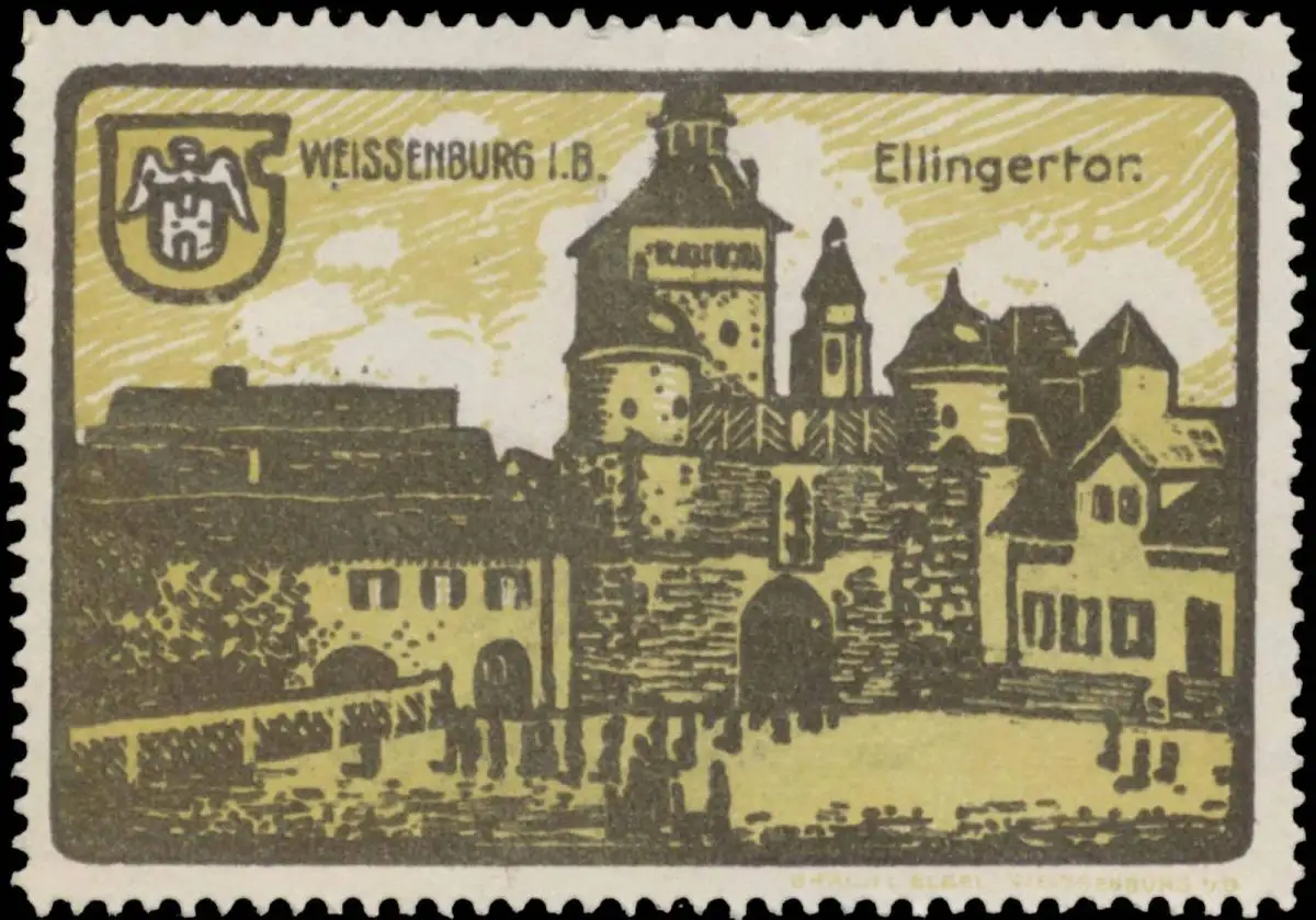 Serie: Weissenburg in Bayern, Druck: Braun & Elbel, Weißenburg, Größe/Zustand: 4x6 , guter Zustand, Original alte Reklamemarke die seinerzeit für die Werbung benutzt wurde