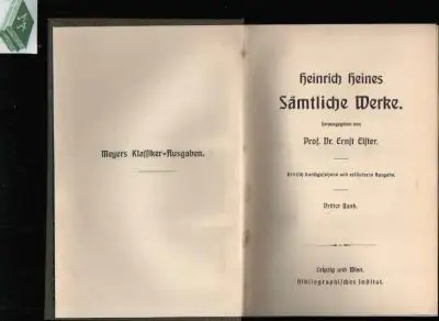 Heinrich Heines Sämtliche Werke ; dritter Band ; Ernst Elster ; Reisebilder ; Verse ; Erzählungen ; Literaturwissenschaft