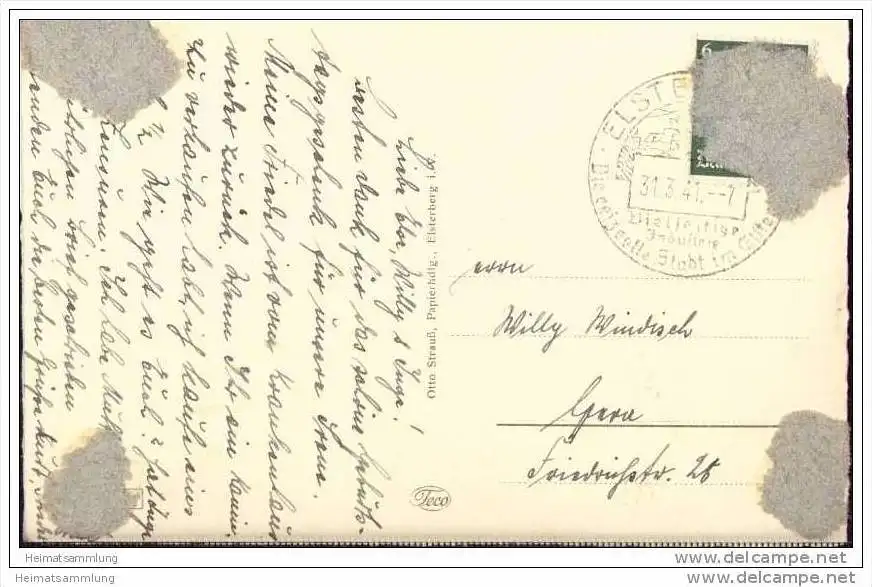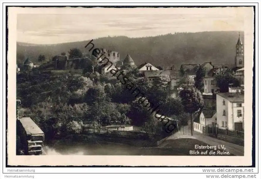 Elsterberg i. V. - Blick auf die Ruine - Foto-AK - rückseitig Klebestellen (G22650) gel. 1941