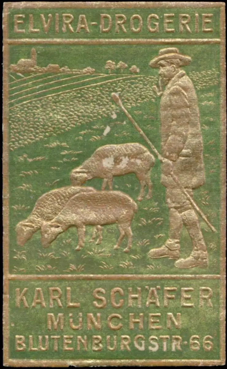 Blutenburgstraße 66, Schäfer mit Schafe, Größe/Zustand: 6x4 , beschädigt, Original alte Reklamemarke die seinerzeit für die Werbung benutzt wurde
