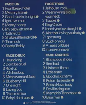 Heartbreak Hotel; I got a Woman; Too much; Blueberry Hill; I feel bad; Babay I don`t care; Hound Dog; Don`t be cruel; Jailhouse Rock; All shook up; u.v.a.