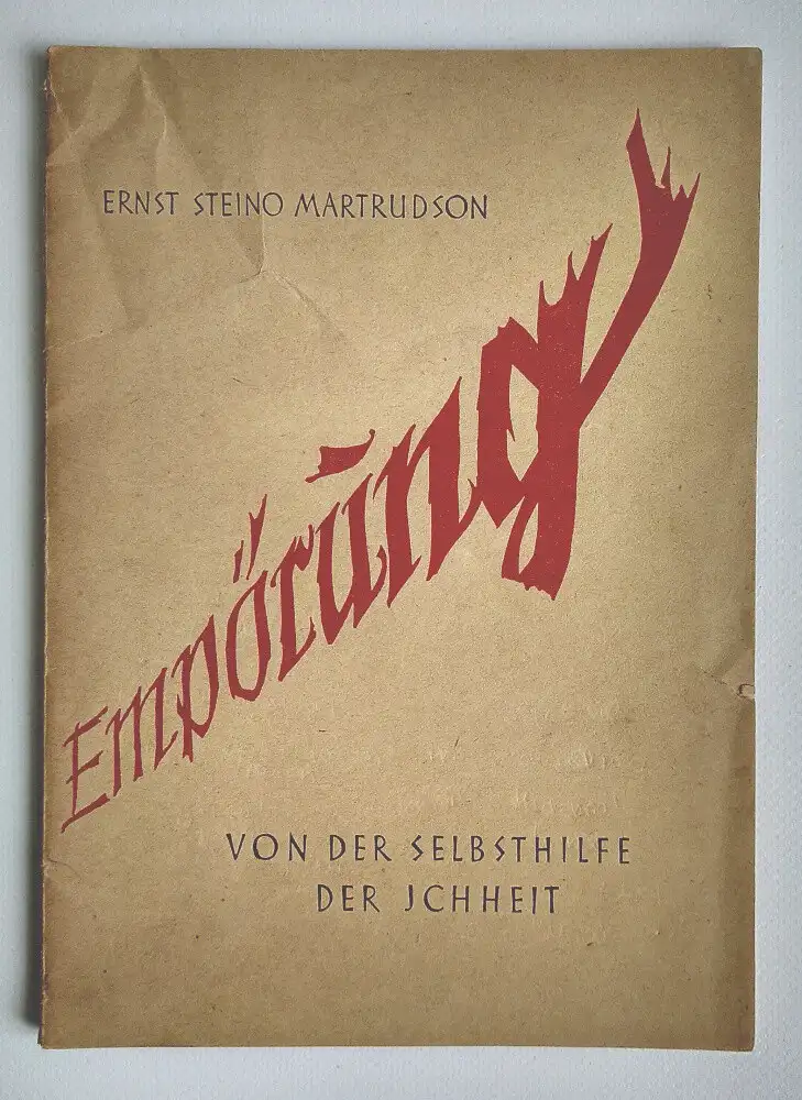Alte Broschüre Empörung Von der Selbsthilfe der Ichheit von Ernst Steino Martrudson, Verlag des Einzigen, Frankfurt am Main 1930. Format: 20,8 x 14,8 cm, 56 Seiten. Zustand: leicht unsauber, leicht fleckig, Knicke vorhanden, alles weitere siehe bitte Fotos.