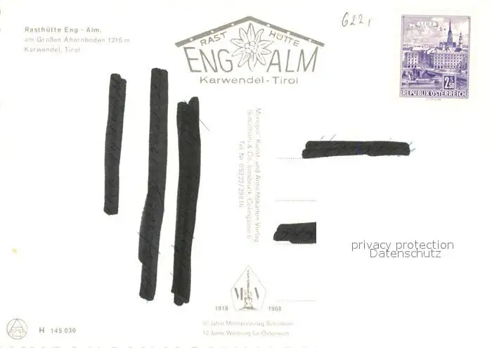 Eng_Hinterriss_Tirol Rasthuette Eng Alm Gastraeume Bar Eng_Hinterriss_Tirol postalisch gelaufen nach 1965 Erhaltung siehe scans [WerneD78] WernPID7