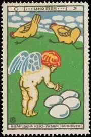 und Eier, Geflügel, Größe/Zustand: 6x4 , guter Zustand, Original alte Reklamemarke die seinerzeit für die Werbung benutzt wurde