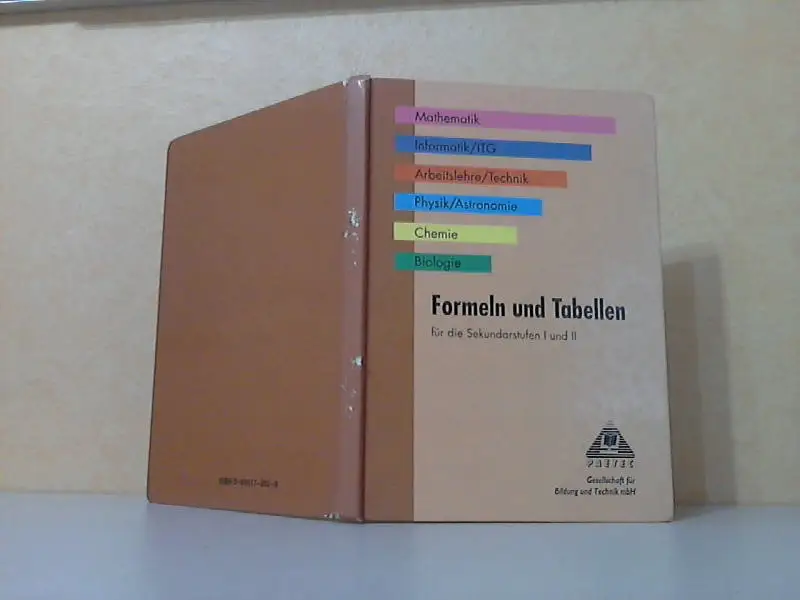 der Rücken und die Ecken sind teils stärker bestoßen, die Seiten sind teils felckig, aus dem Inhalt: Alphabete, Primzahlen, Rechnen mit Näherungswerten 4 - Größen und Einheiten - Wertetabellen - Mengenlehre, Aussagenlogik, Rechenregeln, Kaufmännisches Rechnen, Gleichungslehre - Planimetrie, Stereometrie, ibene Trigonometrie - Funktionen, Folgen und Reihen; Grenzwerte - Grenzwerte von Funktionen, Differentialrechnung, Anwendungen der Differentialrechnung - Integralrechnung, Anwendungen der Integralrechnung - Analytische Geometrie der Ebene, Vektorrechnung, Analytische Geometrie des Raumes - Kombinatorik, Statistik, Wahrscheinlichkeitsrechnung, Komplexe Zahlen - Erhaltungssätze, Mechanik - Wärmelehre - Elektrizitätslehre - Schwingungen und Wellen, Optik, Quantenphysik! - Spezielle Relativitätstheorie, Atom- und Kernphysik, Astronomie - Eigenschaften von Stoffen, Allgemeine Stoff- und Reaktionskonstanten - Atombau, Stöchiometrie, Kinetik, Gasgesetze, Chemisches Gleichgewicht, Elektrochemie, Energetik - Physiologie/Biochemie, Humanbiologie - Ökologie, Genetik/Populationsbiologie - Register Beschreibung vom Antiquariat Ardelt 1m2b ISBN-Nummer: 3895172529 Antiquariat Ardelt