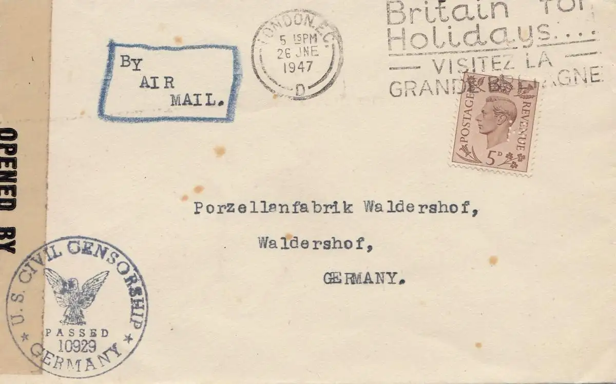 England: 1947: London nach Waldershof/Deutschland - Censor - Perfin