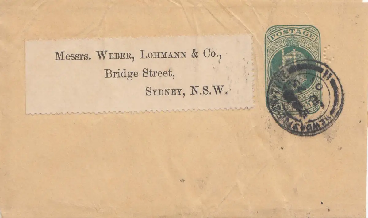 England: Streifband Ganzsache mit Perfin nach Sydney