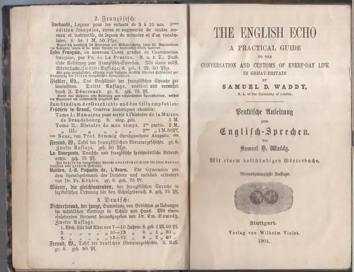 English / Englisch. - Samuel D. Maddy: The english echo. A practical guide to the conversation and customs of every-day life in Great-Britain / Praktische Anleitung zum Englisch-Sprechen. Mit einem vollständigen Wörterbuche.