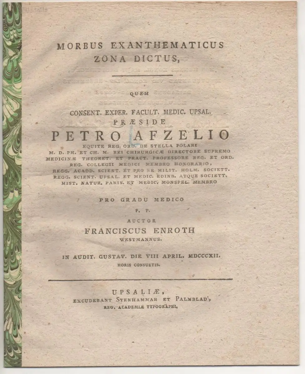 Enroth, Franciscus: Morbus exanthematicus zona dictus. Dissertation.
