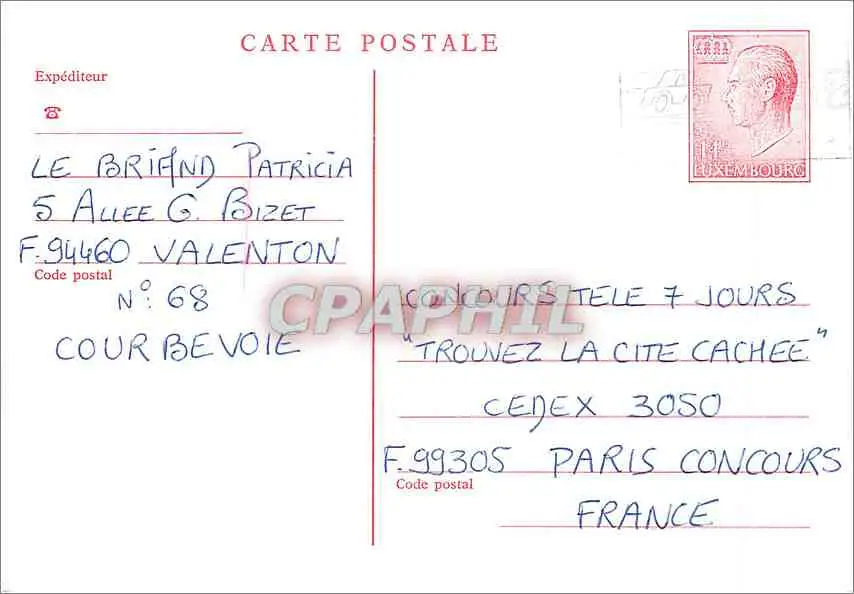 Entier Postal Luxembourg pour Paris