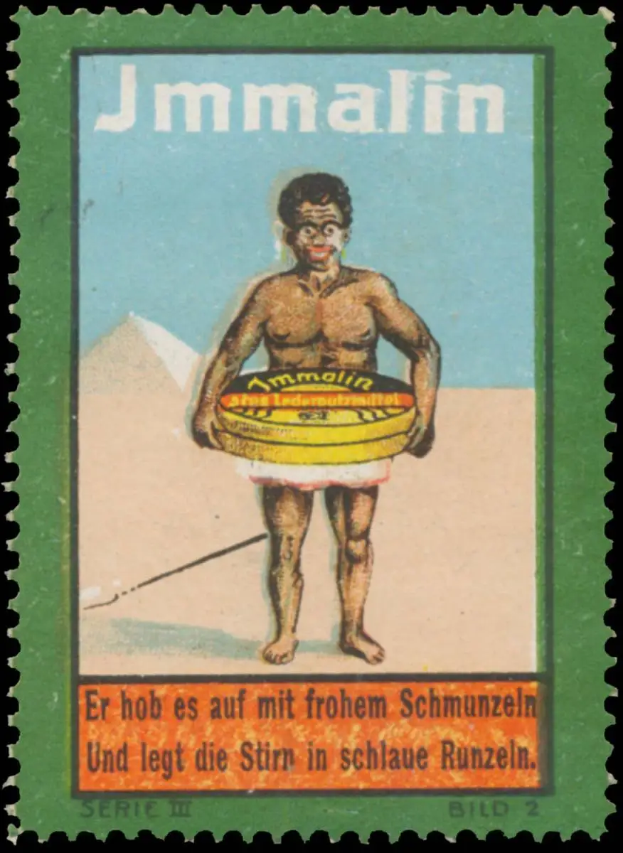 und legt die Stirn in schlaue Runzeln, Immalin Schuhcreme, Schuhputz, Serie III, Bild 2, Größe/Zustand: 5x4 , Fehldruck, guter Zustand, Original alte Reklamemarke die seinerzeit für die Werbung benutzt wurde