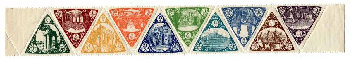 Vollgummi - Erdbeben von Messina - Private Wohltätigkeitsausgabe der Streifen von 10 verschiedenen Exemplaren mit einem Gesichtswert von 1,1/2 d. (Kat. GUS Königreich S. 65) - Seltene Nr. 54/L