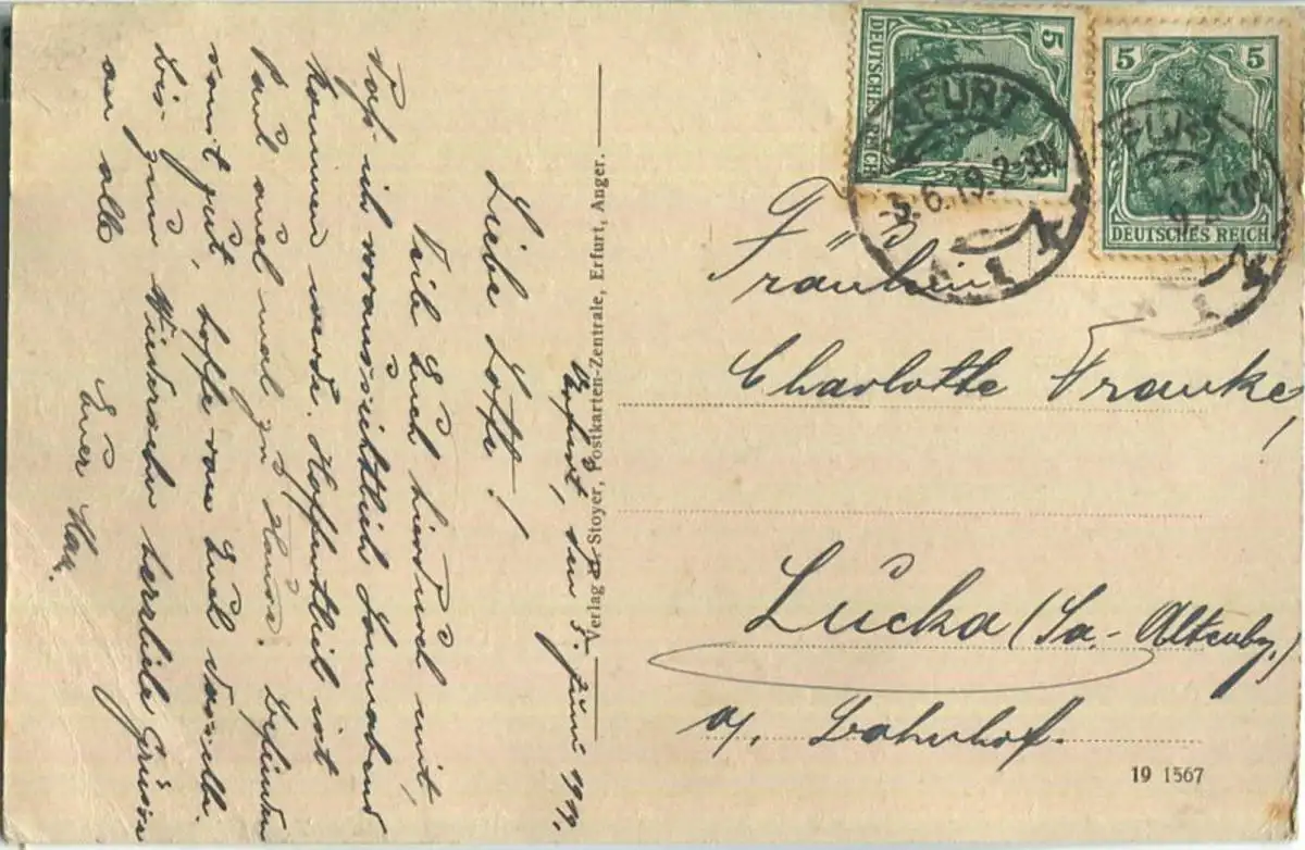Erfurt - Steigerwald - Verlag H. Stoyer Erfurt - Gebrauchsspuren - Knicke (G50081) gel. 1919